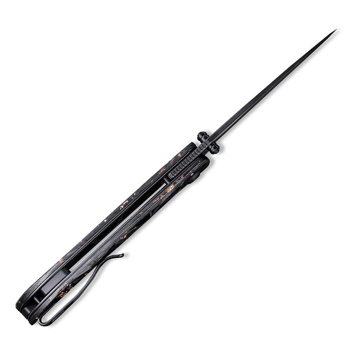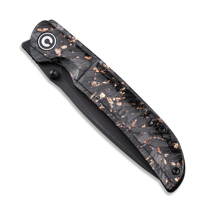 Civivi Imperium Front Flipper / Thumb Studs Knife – Shredded Carbon Fiber And Copper Shred In Clear Resin Contoured Handle (3.47″ Black Stonewashed) C2106C